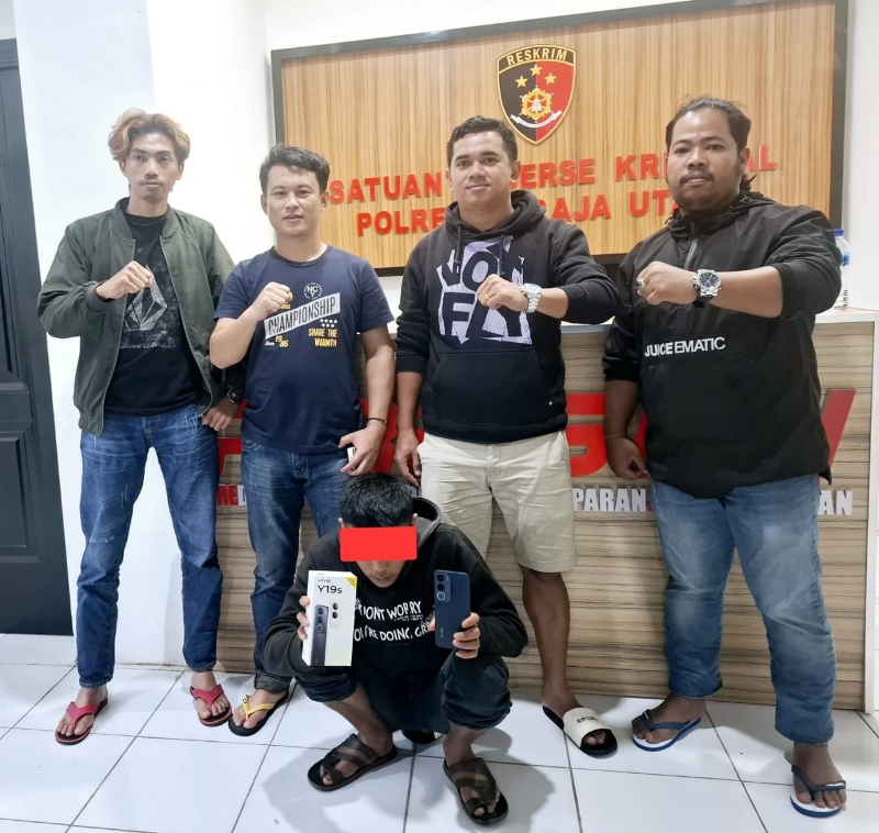 “Kini, terduga pelaku JR (24) beserta barang bukti 1 unit Handphone merek Vivo Y19s warna hitam milik korban telah diamankan guna proses hukum lebih lanjut. Untuk barang bukti hasil kejahatan lainnya akan terus dilakukan upaya pencarian,” ungkap Kasat Reskrim.