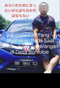 Terduga pelaku datang bersama temannya degan mengunakan mobil Honda Jazz, Warna Biru dan beberapa motor