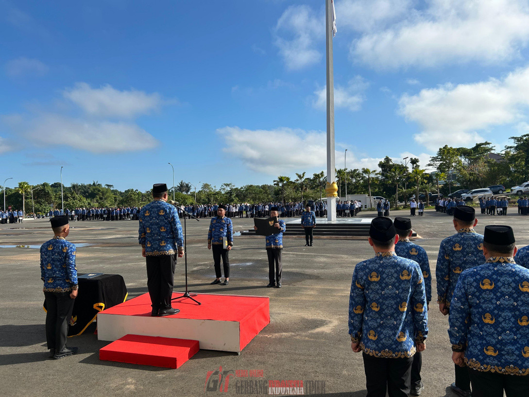 KOTABARU KALSEL GERBANG INDONESIA TIMUR NEWS.COM—- Asisten I Bidang Pemerintahan dan Kesejahteraan Rakyat H. Minggu Basuki dalam mewakili Bupati Kotabaru memimpin Apel Hari Kesadaran Nasional yang diikuti para Aparatur Sipil Negara (ASN) di lingkungan Pemerintah Kabupaten Kotabaru, di Halaman Kantor Bupati, Sebelimbingan, Jumat (17/04/2026).