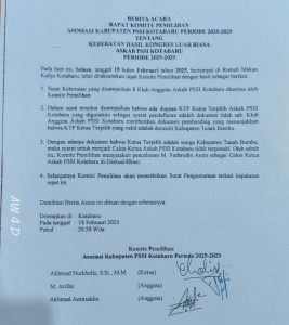 Ia menyampaikan bahwa yang tergabung dalam 8 (Delapan) klub Askab PSSI Kotabaru pada 15 Februari 2025 kemarin, mengajukan keberatan terkait Hasil KLB ke Komite Pemilihan Askab PSSI Kotabaru, selaku Komite yang Sah dan berlaku sesuai SK Nomor : 02/SK/PSSI-KTB/I/2025 tentang Penetapan Komite Pemilihan dan Komite Banding Pemilihan Asosiasi Kabupaten PSSI Kotabaru.