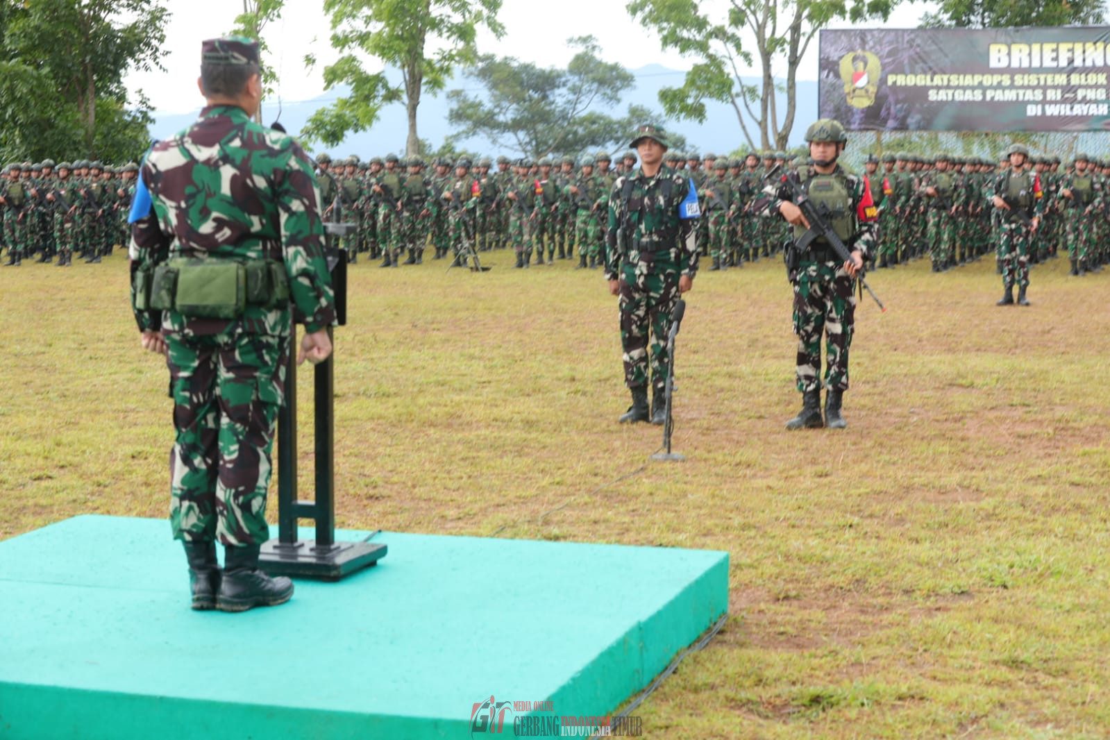 GERBANG INDONESIA TIMUR NEWS.COM GOWA —— Kepala Staf Kodam (Kasdam) XIV/Hasanuddin, Brigjen TNI Sugeng Hartono, S.E., M.M., memimpin Briefing Latihan Program Latihan Kesiapan Operasi (Proglatsiapops) Sistem Blok dan Latihan Penyiapan Pratugas Satgas Pengamanan Perbatasan (Pamtas) RI – Papua Nugini Kewilayahan Yonif 726/Tamalatea di Wilayah Papua TA. 2026, bertempat di Lapangan Desa Sicini, Kec. Parigi, Kab. Gowa. Senin, (27/4/2026).