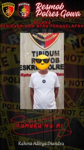 Berdasarkan dengan adanya laporan tersebut di atas kemudian dilakukan serangkaian penyelidikan dan di peroleh info bahwa pelaku penipuan dan atau penggelapan berada di rumah kostnya Jl. Sipala, Kel. Paccerakkang, Kec. Biringkanaya, Kota Makassar sehingga UNIT RESMOB POLRES GOWA yang di pimpin oleh KANIT RESMOB GOWA IPDA ANDI MUHAMMAD ALFIAN, S.H. bergerak menuju tempat yang di maksud dan berhasil mengamankan pelaku selanjutnya pelaku di bawa ke Polres gowa untuk proses hukum lebih lanjut.