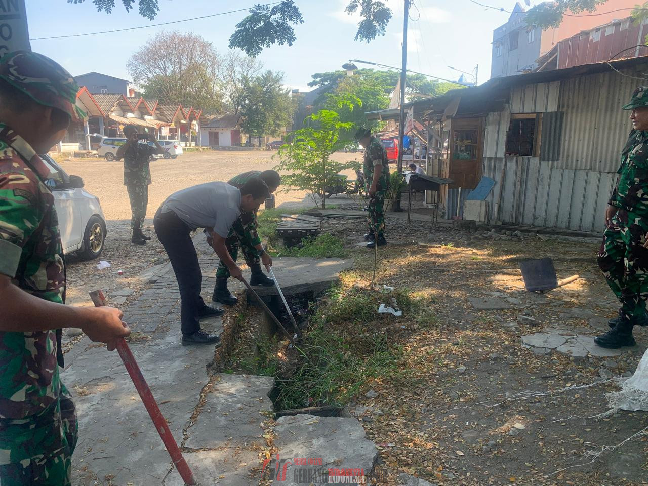Kegiatan Karya Bhakti (Pembersihan Selokan) di Wilayah Koramil 1408-09/TML