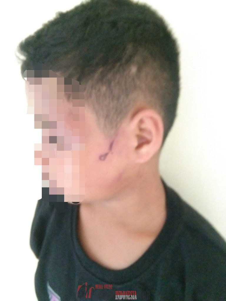 Terduga pelaku penganiayaan anak dibawah umur menghantam korban terduga pelaku tindak kriminal pencurian dengan menggunakan skop alat bangunan kewajah korban hingga mengalami luka dan berdarah pada pelipis kiri
