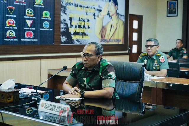 MAKASSAR SULSEL GERBANG INDINESIA TIMUR NEWS.COM —— Pangdam XIV/Hasanuddin Mayjen TNI Windiyatno mengikuti kegiatan Video Conference (Vicon) bersama Panglima TNI Jenderal TNI Agus Subiyanto, S.E., M.Si., di Ruang Vicon Puskodalops Makodam, Jl. Urip Sumoharjo, Kota Makassar. Kamis (23/10/2025).