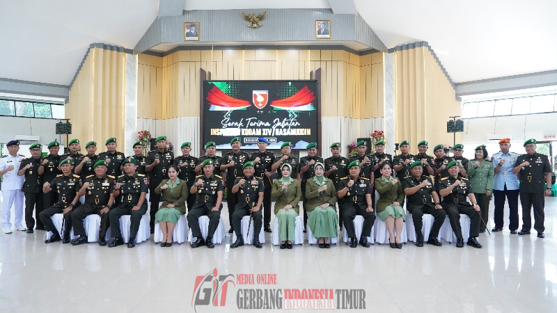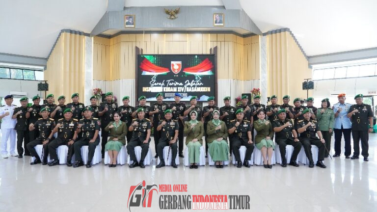 GERBANG INDONESIA TIMUR NEWS.COM MAKASSAR – —- Pangdam XIV/Hasanuddin Mayjen TNI Bangun Nawoko didampingi Ketua Persit KCK Daerah XIV/Hasanuddin Ny. Renny Bangun Nawoko memimpin Serah Terima Jabatan (Sertijab) dan Pelepasan Inspektur Kodam (Irdam) XIV/Hsn. Dalam kesempatan tersebut, jabatan Irdam diserahterimakan dari Brigjen TNI Berlin Germany, S.Sos., M.M., CFrA., CHRMP., kepada Brigjen TNI Wulang Nur Yudhanto, S.E., sebagai bagian dari dinamika organisasi dan pembinaan satuan, bertempat di Balai Pertemuan Hasanuddin (BPH) Makodam, Jl. Urip Sumoharjo, Kota Makassar. Jumat, (10/4/2026).