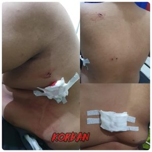 Akibat dari penganiayaan tersebut, korban mengalami luka tusuk pada bagian dada serta luka tusuk pada bagian bawah ketiak sebelah kiri yang diduga akibat terkena senjata tajam dan pelaku juga mengalami luka terbuka dibawah lutut kaki sebelah kanan serta luka terbuka dibagian lengan sebelah kiri yang diduga akibat terkena senjata tajam miliknya sendiri.
