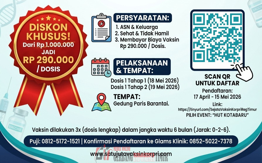 “Vaksinasi HPV untuk pencegahan kanker leher rahim insya Allah akan dilaksanakan pada 18 hingga 19 Mei. Pendaftaran sudah dibuka sejak 17 April hingga 15 Mei,” ujar Anang saat ditemui di Kantor BKPSDM Kotabaru, Rabu (22/4/26).