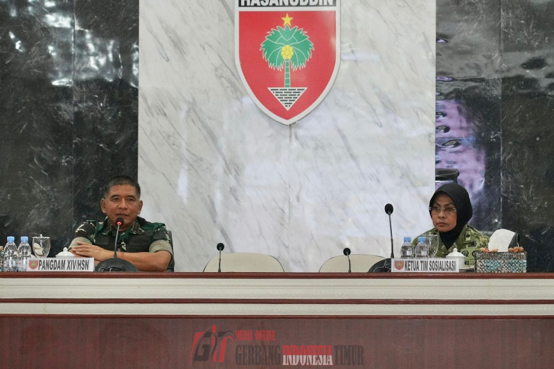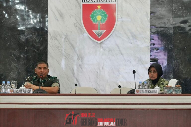 GERBANG INDONESIA TIMUR NEWS.COM MAKASSAR  —––  Pangdam XIV/Hasanuddin Mayjen TNI Bangun Nawoko membuka langsung kegiatan sosialisasi Gerakan Lingkungan Bebas Sampah (Zero Waste). Sosialisasi tersebut disampaikan oleh Kolonel Caj (K) Nurjanah selaku Paban Utama Lingkungan Hidup (LH) Sahli Bidang Wasnas dan LH Panglima TNI, serta diikuti oleh Forkopimda Sulawesi Selatan dan Sulawesi Tenggara, baik secara langsung maupun melalui video conference. Kegiatan ini digelar di Ruang Bina Yudha (RBY) Makodam, Jl. Urip Sumoharjo, Kota Makassar, Selasa (21/4/2026).