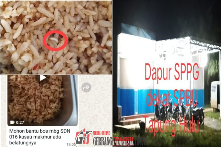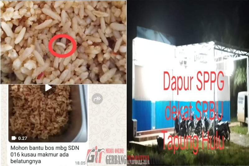 GERBANG INDONESIA TIMUR NEWS.COM KAMPAR, ——- Program Makan Bergizi Gratis (MBG) yang seharusnya menjadi penopang kesehatan generasi bangsa, justru menyisakan potret kelam di Kabupaten Kampar, kecamatan Tapung Hulu. Sebuah insiden menjijikkan terjadi di SD Negeri 016 Desa Kusau Makmur, Sabtu (18/04/2026), di mana ditemukan belatung yang masih hidup menggeliat di dalam menu nasi goreng yang dibagikan kepada siswa.