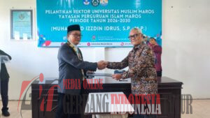 MAROS SULAWESI SELATAN GERBANG INDONESIA TIMUR NEWS COM ———- Suasana khidmat dan penuh optimisme menyelimuti acara Pelantikan Rektor baru di lingkungan Universitas Muslim Maros (UMMA), yang berlangsung di Gedung Pertemuan Kampus 2 UMMA pada Senin, 13 April 2026.