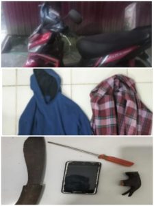 Ditambahkannya, selain mengamankan NBR, pihaknya juga berhasil mengankan sejumlah barang bukti yaitu 1 unit Handphone jenis Android warna hitam, 1 buah Obeng, 1 buah Palu yang sudah rusak, 1 buah parang, 1 unit Sepeda Motor jenis matic warna merah, 1 buah Jaket warna biru, dan 1 buah sarung.