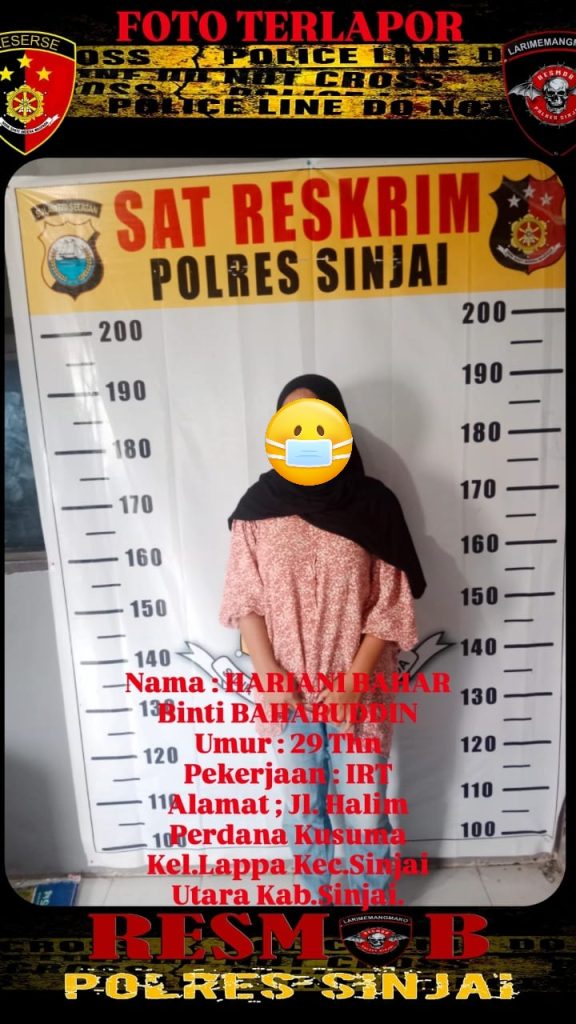 Tim Resmob Polres Sinjai yang bergerak cepat dengan mengamankan terduga tindak pelaku, yang merupakan Ibu Runah Tangga Berinisial H.B 20 Thn warga Jl.Halim Perdana Kusuma Kelurahan Lappa Kec.Sinjai Utara Kabupaten Sinjai.
