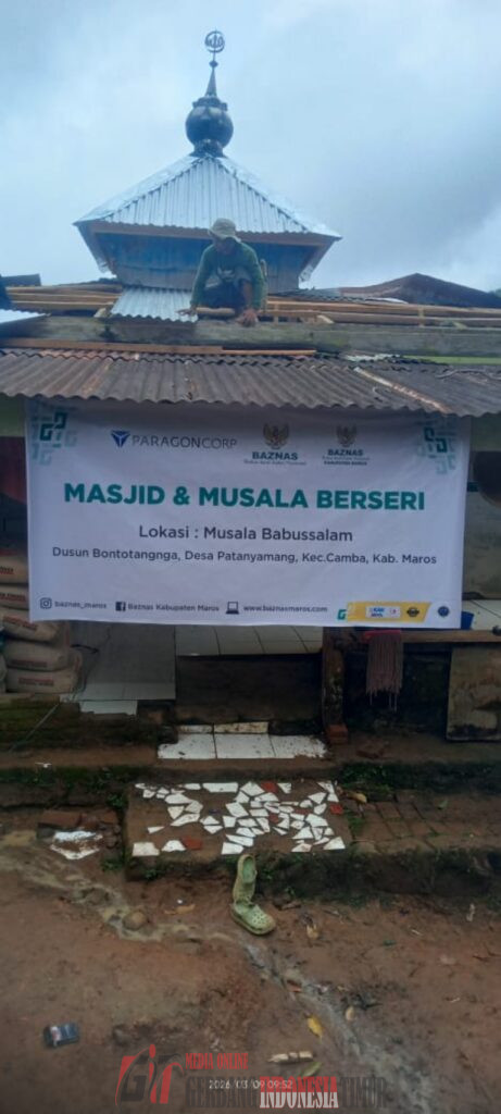 GERBANG INDONESIA TIMUR NEWS.COM MAROS ———Baznas RI berkolaborasi dengan Baznas kabupaten Maros dan Paragon Corporation melakukan kegiatan sosial dibulan suci Ramadhan dengan menyambangi desa dipedalaman dan melakukan renovasi musholla di dusun Bontotangnga, desa Patanyamang, kecamatan Camba, kabupaten Maros, jumat (13/03/2026).