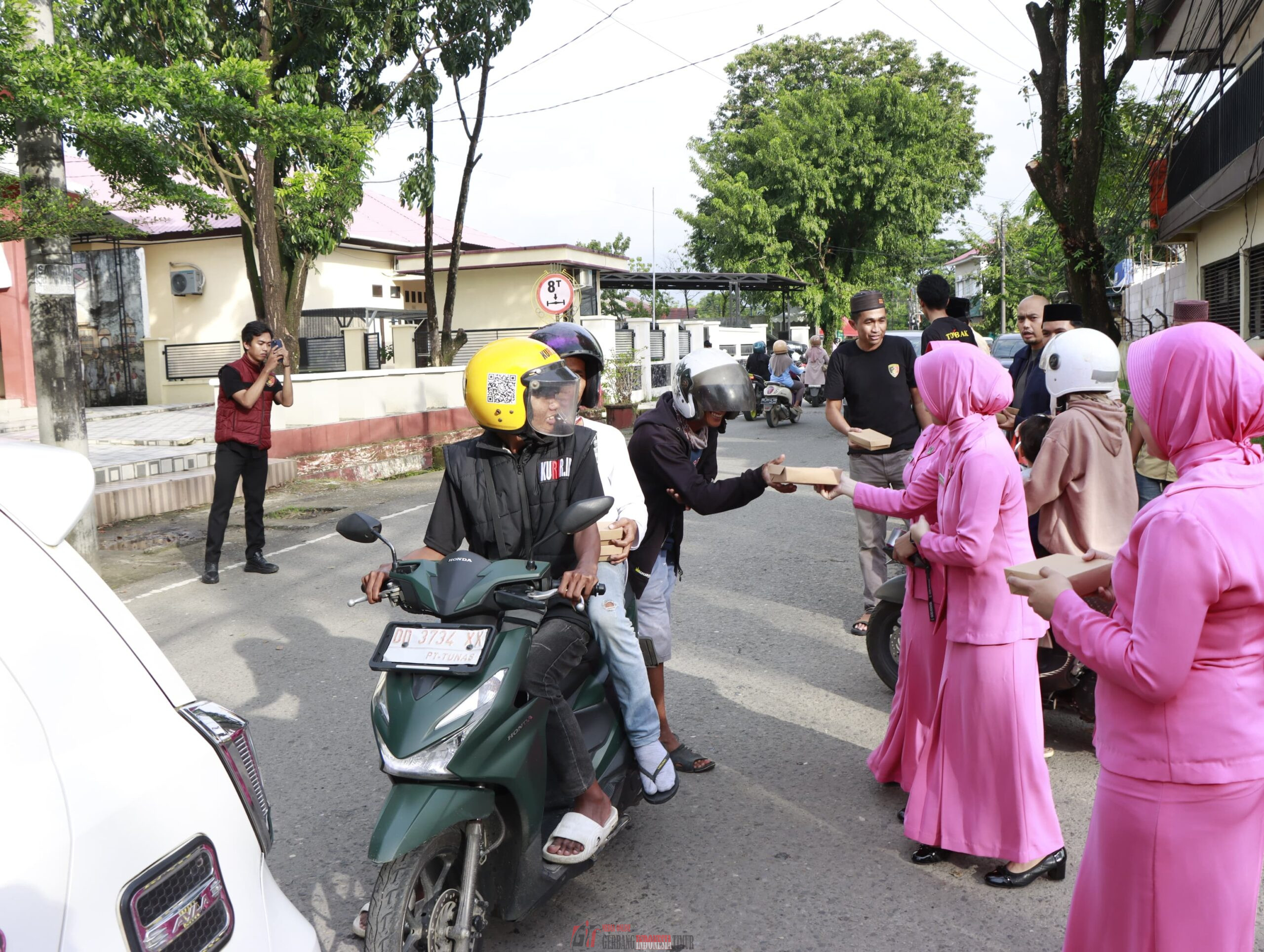 Dengan penuh kehangatan, personel Polres Pangkep dan Bhayangkari menyapa warga sambil membagikan paket takjil sebagai bentuk kepedulian dan kebersamaan.